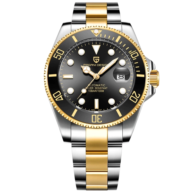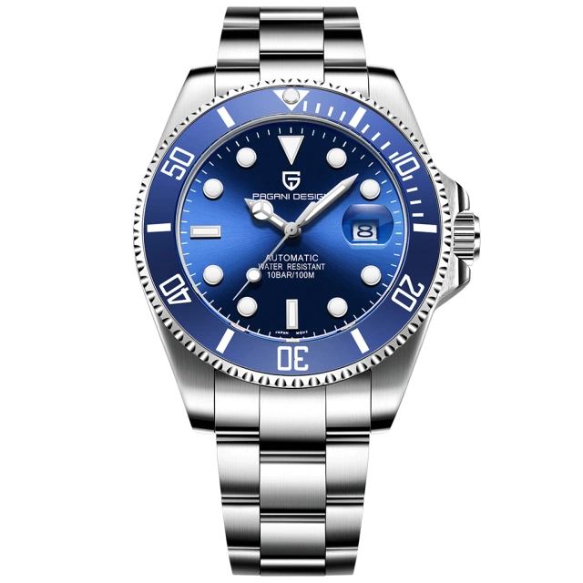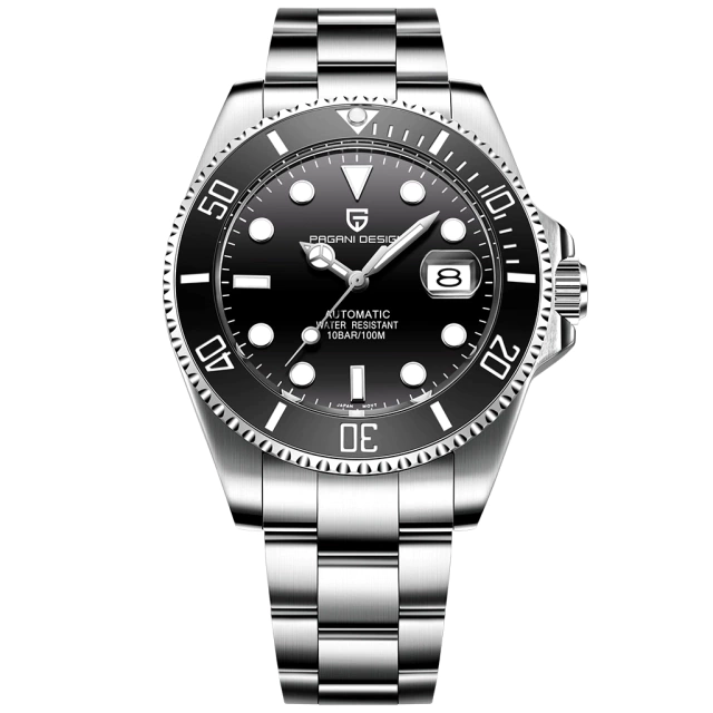 Sapphire crystal. Miyota 8215 automatic movement. 316L stainless steel. Ceramic bezel. Water resistant to 100 meters.